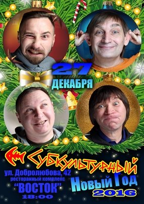 27 декабря состоится традиционный концерт "Субкультурный Новый год" в кафе "Восток" по адресу Добролюбова, 42.