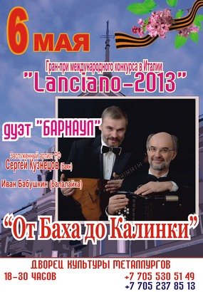 Заслуженный артист РФ Сергей Кузнецов (баян) и Иван Бабушкин (балалайка) приглашают на концерт «От Баха до Калинки».