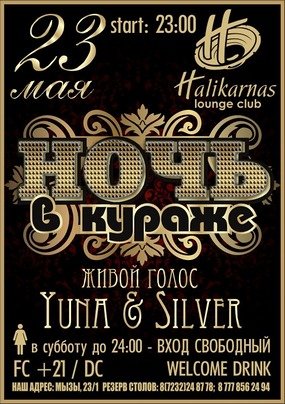 В эту субботу в самом веселом месте loungе club Halikarnas самая роскошная, заряженная позитивом «Ночь в кураже» любимая музыка, авторская шоу программа!