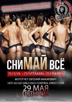 За окном всё теплее и лето почти здесь! Уже не терпится избавиться от лишней одежды и показать тело? Хочется ещё больше жары? Приходи жечь в Чегу! В эту ночь коктейльные реки для самых смелых и откровенных! Это МАЙ — всё сниМАЙ!
