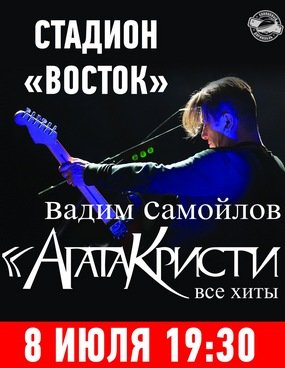 Мы проделали огромную работу по созданию видео-музыкального спектакля, и этот год посвятим концертному проекту: «Вадим Самойлов. «Агата Кристи». Все хиты». Самые популярные песни легендарной группы будут исполнены вместе с залом одним из её основателей и солистов.
