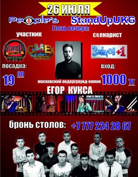 Вы можете забронировать столик, позвонив по номеру 8-777-224-28-67 — администратор проекта "StandUp UKG". Торопитесь, количество мест ограничено!