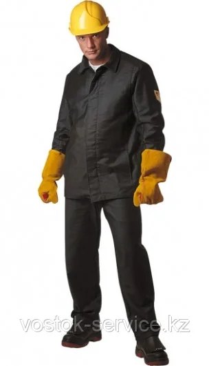 3. Костюм металлурга (куртка и брюки/полукомбинезон) — основной барьер между телом и агрессивной средой. Используются ткани с огнестойкой пропиткой, иногда — с алюминизированными вставками, отражающими тепло.