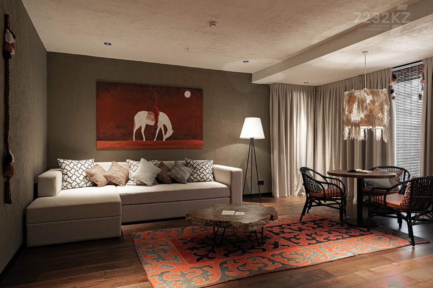 Бутик-отель YURTA стал одним из примеров того, как этнические традиции вплелись в современный комфорт. Интерьеры выполнены в образе степных ассоциаций, а в отделке преобладают дерево, камень и натуральный текстиль. Пространство создаёт впечатление путешествия в культуру степи и при этом остаётся удобным для деловых людей.